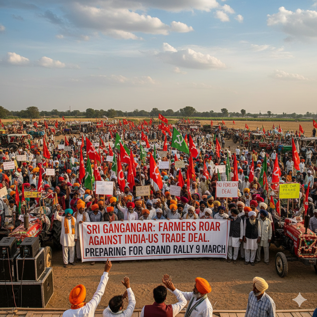 श्रीगंगानगर: भारत-अमेरिका ट्रेड डील के खिलाफ किसानों की हुंकार और 9 मार्च की महारैली की तैयारी