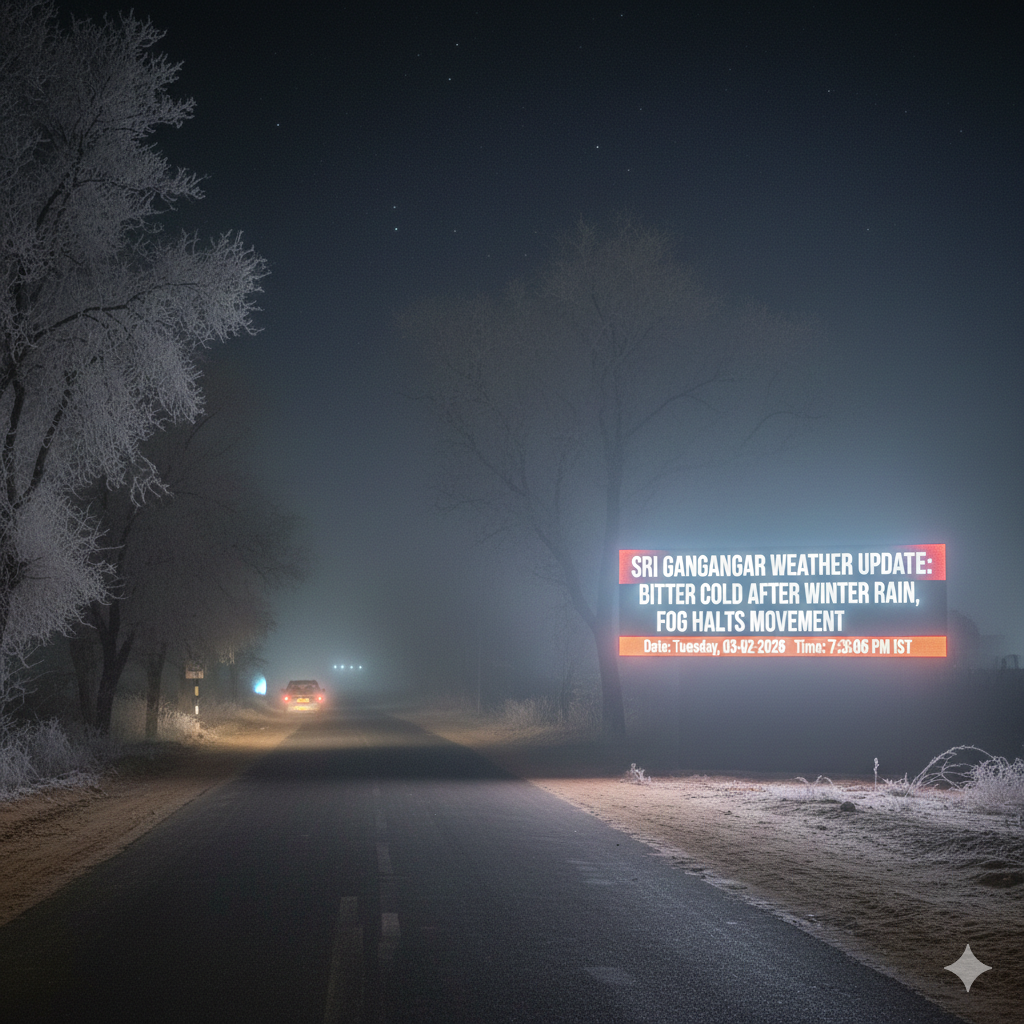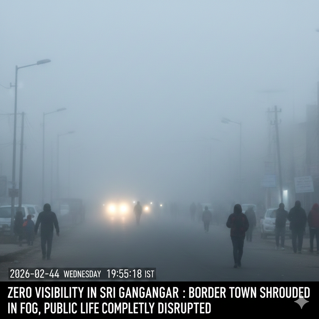 श्रीगंगानगर में ‘विजिबिलिटी शून्य’: कोहरे की चादर में लिपटा सीमावर्ती शहर, जनजीवन पूरी तरह अस्त-व्यस्त