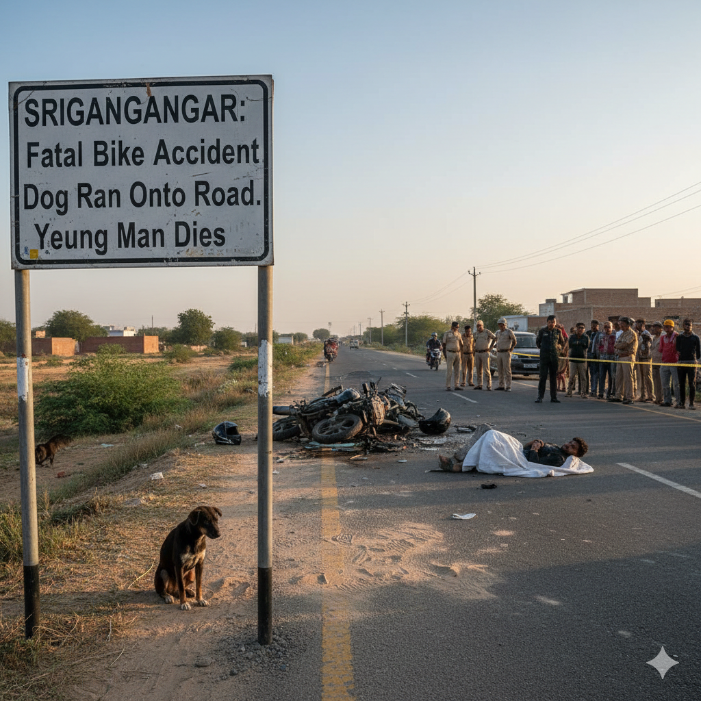 श्रीगंगानगर: सड़क पर कुत्ता आने से बाइक फिसली, युवक की दर्दनाक मौत