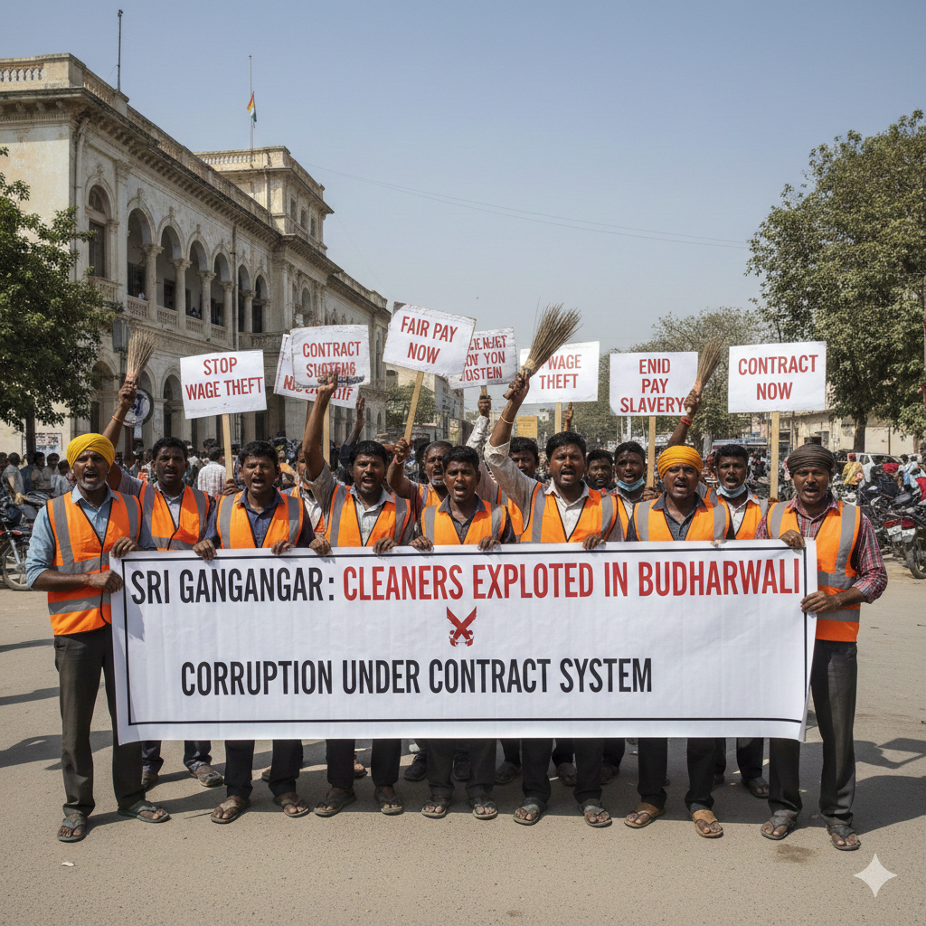 श्रीगंगानगर: बुधरवाली में सफाई कर्मचारियों के शोषण का मामला; ठेका प्रथा की आड़ में भ्रष्टाचार के आरोप