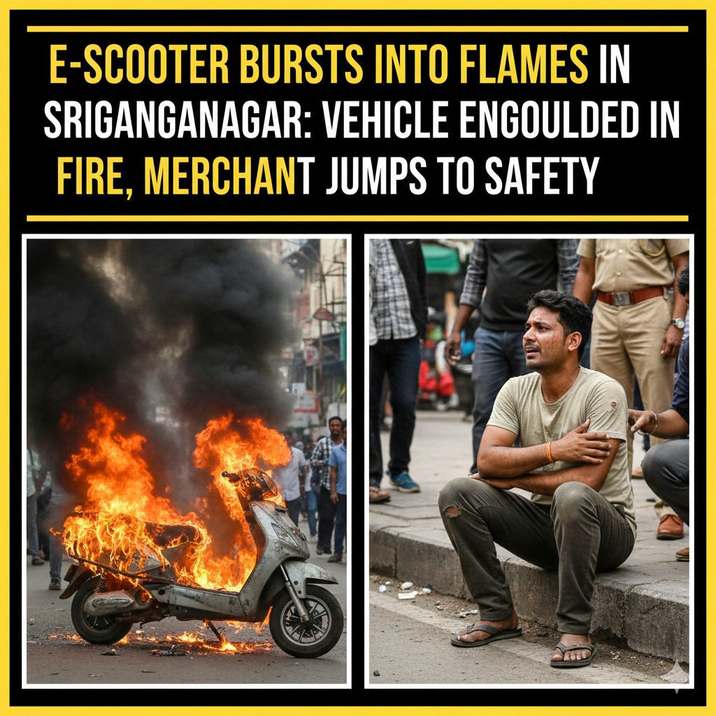 श्रीगंगानगर में चलती ई-स्कूटी बनी आग का गोला: धू-धू कर जली गाड़ी, व्यापारी ने कूदकर बचाई जान