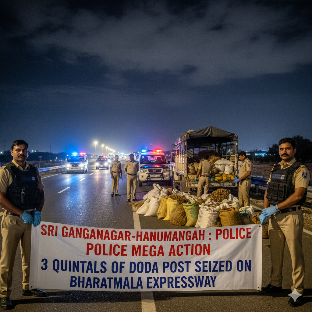 श्रीगंगानगर-हनुमानगढ़ में पुलिस का बड़ा एक्शन: भारतमाला एक्सप्रेसवे पर 3 क्विंटल डोडा पोस्त बरामद