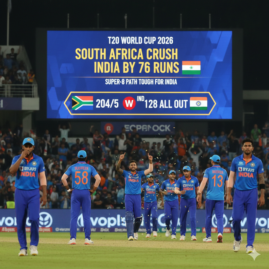 टी20 वर्ल्ड कप 2026: दक्षिण अफ्रीका ने भारत को 76 रनों से रौंदा; सुपर-8 में टीम इंडिया की राह हुई कठिन