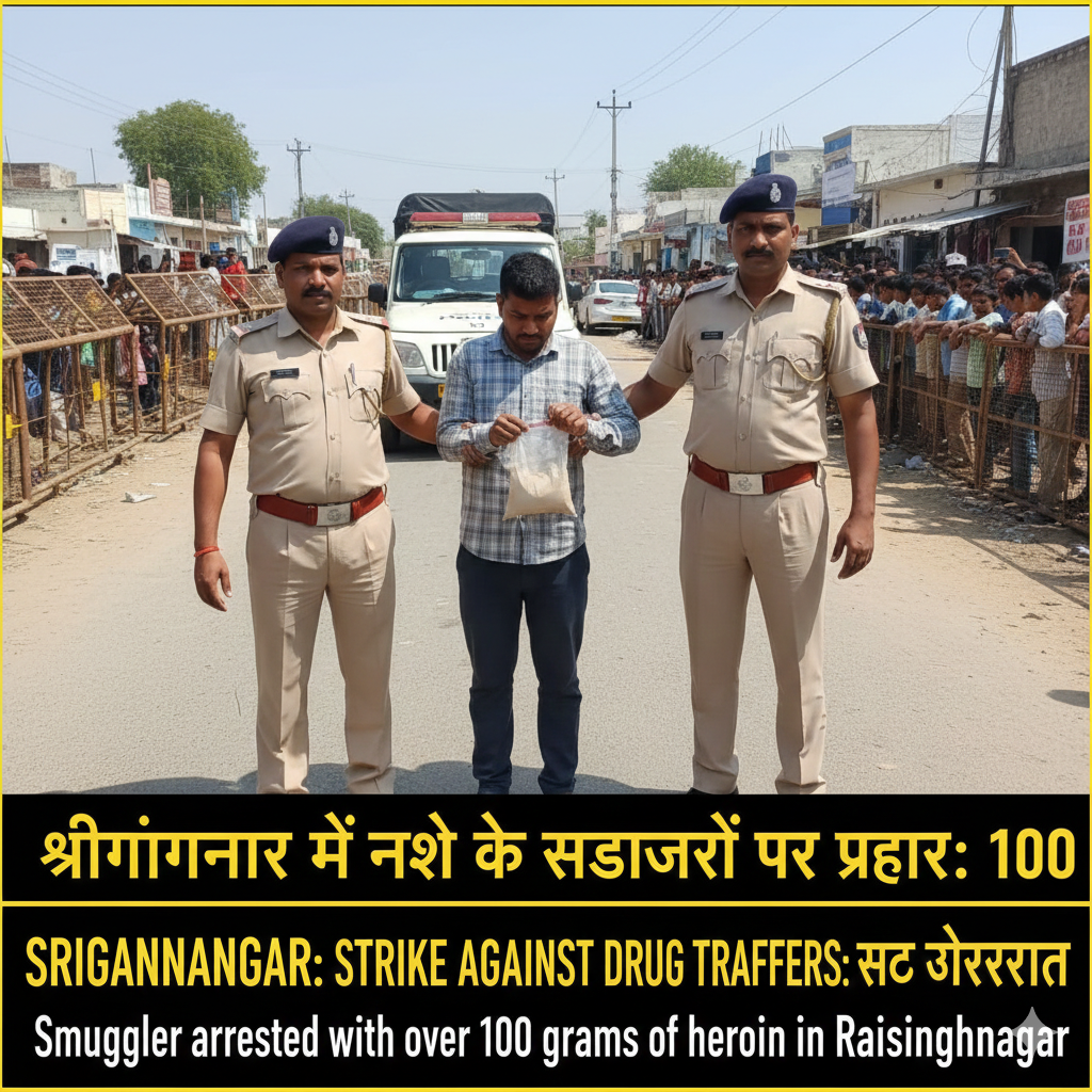 श्रीगंगानगर में नशे के सौदागरों पर प्रहार: रायसिंहनगर में 100 ग्राम से अधिक हेरोइन के साथ तस्कर गिरफ्तार