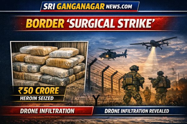 श्रीगंगानगर सीमा पर ‘सर्जिकल स्ट्राइक’: ₹50 करोड़ की हेरोइन बरामद और ड्रोन घुसपैठ का खुलासा