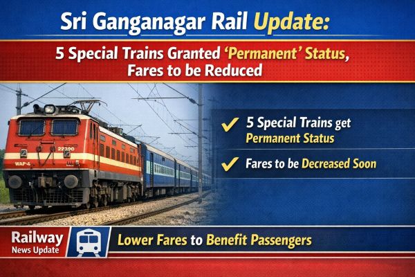 श्रीगंगानगर रेल अपडेट: 5 स्पेशल ट्रेनों को मिला ‘स्थायी’ दर्जा, कम होगा किराया