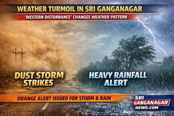 श्रीगंगानगर में मौसम का पलटवार: ‘पश्चिमी विक्षोभ’ से बदला मिजाज, धूल भरी आंधी और बारिश का ऑरेंज अलर्ट जारी