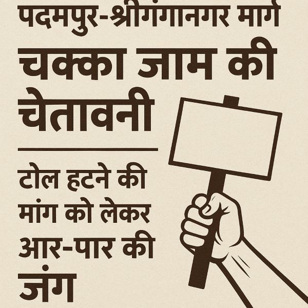 पदमपुर-श्रीगंगानगर मार्ग पर चक्का जाम की चेतावनी: टोल हटाने की मांग को लेकर आर-पार की जंग