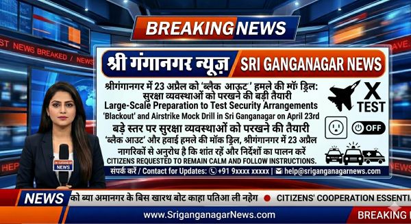 श्रीगंगानगर में 23 अप्रैल को ‘ब्लैक आउट’ और हवाई हमले की मॉक ड्रिल: सुरक्षा व्यवस्थाओं को परखने की बड़ी तैयारी