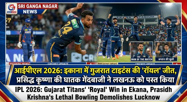 आईपीएल 2026: इकाना में गुजरात टाइटंस की ‘रॉयल’ जीत, प्रसिद्ध कृष्णा की घातक गेंदबाजी ने लखनऊ को पस्त किया