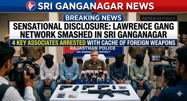 सनसनीखेज खुलासा: श्रीगंगानगर में लॉरेंस गैंग के बड़े नेटवर्क का भंडाफोड़, विदेशी हथियारों के साथ 4 गुर्गे गिरफ्तार!