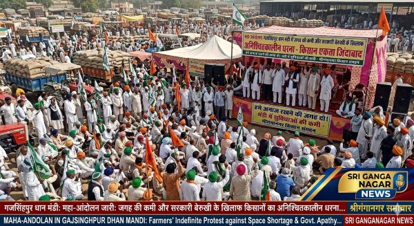 गजसिंहपुर धान मंडी में महा-आंदोलन: जगह की कमी और सरकारी बेरुखी के खिलाफ किसानों का अनिश्चितकालीन धरना
