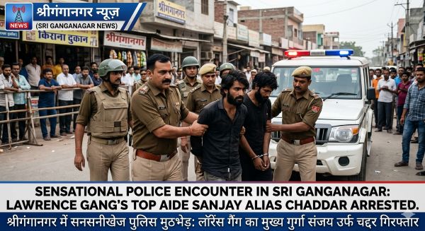 श्रीगंगानगर में सनसनीखेज पुलिस मुठभेड़: लॉरेंस गैंग का मुख्य गुर्गा संजय उर्फ चद्दर गिरफ्तार