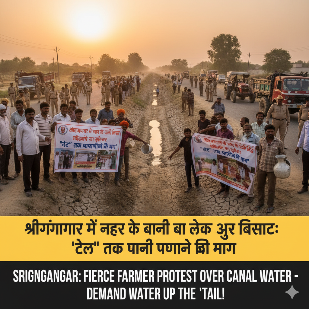 💧 श्रीगंगानगर में नहर के पानी को लेकर किसानों का उग्र विरोध: ‘टेल’ तक पानी पहुंचाने की मांग