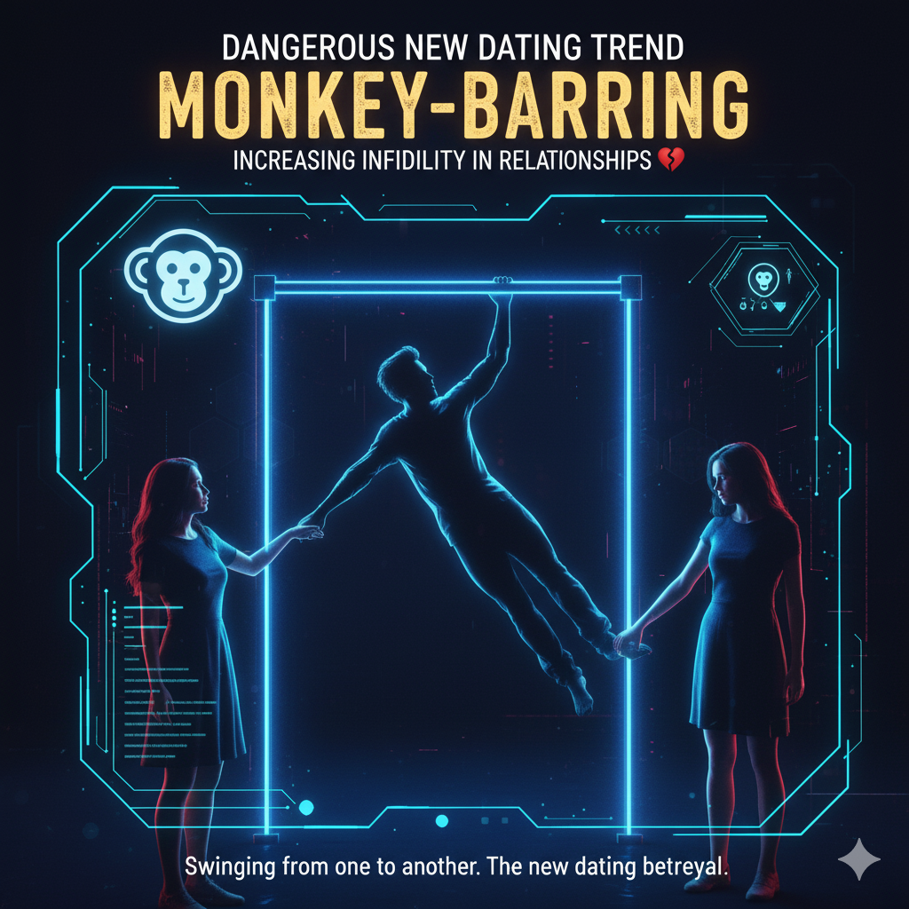 नया और खतरनाक डेटिंग ट्रेंड: ‘मंकी-बैरिंग’ (Monkey-Barring) से रिश्तों में बढ़ रही बेवफाई 🐒