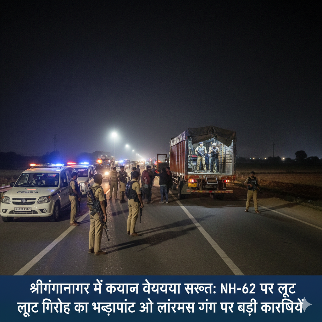 श्रीगंगानगर जिले में अपराध नियंत्रण की दिशा में पुलिस को आज 18 जनवरी 2026 को दोहरी बड़ी सफलता हाथ लगी है। एक ओर जहाँ सूरतगढ़ पुलिस ने राष्ट्रीय राजमार्ग-62 (NH-62) पर आतंक का पर्याय बने लूट गिरोह को दबोचा है, वहीं दूसरी ओर कुख्यात लॉरेंस गिरोह से जुड़े सक्रिय गुर्गों की गिरफ्तारी ने जिले की कानून-व्यवस्था को लेकर पुलिस के इकबाल को बुलंद किया है।