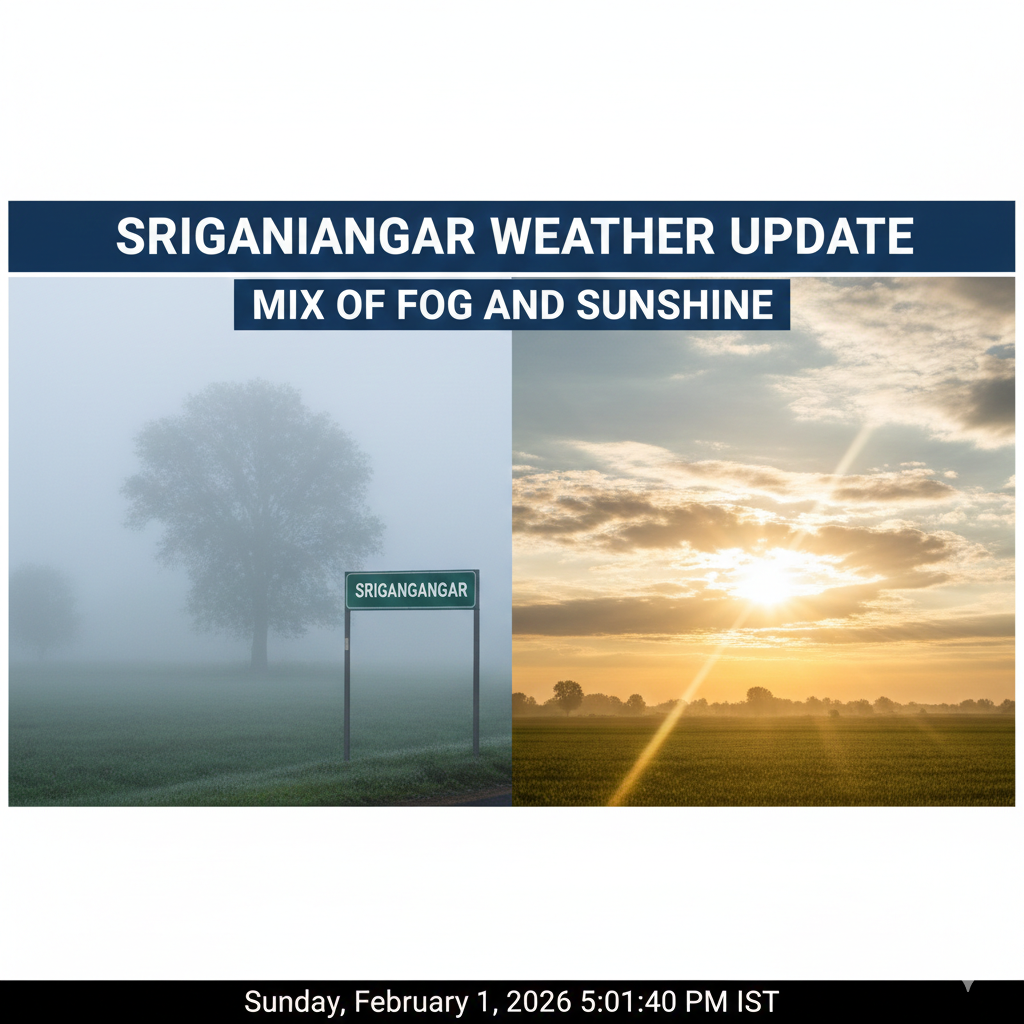 श्रीगंगानगर। राजस्थान के उत्तरी छोर पर स्थित श्रीगंगानगर जिले में आज, 1 फरवरी 2026 को मौसम के विविध रूप देखने को मिले। फरवरी महीने की शुरुआत ठिठुरन भरी सुबह और दोपहर की गुनगुनी धूप के साथ हुई है। मौसम विभाग (IMD) के अनुसार, आने वाले कुछ दिन कृषि प्रधान इस क्षेत्र के लिए काफी महत्वपूर्ण रहने वाले हैं।