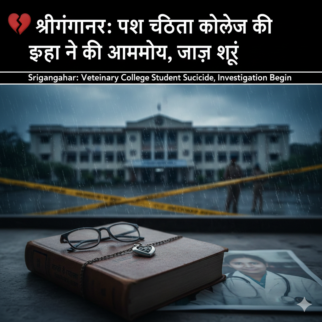 श्री गंगानगर। टांटिया समूह के शिक्षण संस्थान में पशु चिकित्सा विज्ञान की पढ़ाई कर रही एक छात्रा ने कल देर रात (28 नवंबर) अपने आवास पर फांसी लगाकर आत्महत्या कर ली। इस दुखद घटना से पूरे शिक्षण संस्थान और श्रीगंगानगर शहर में सनसनी फैल गई है। सूचना मिलने पर, अन्य छात्रों ने फंदे से उतारकर छात्रा को तत्काल जन सेवा अस्पताल पहुंचाया, लेकिन चिकित्सकों ने उसे मृत घोषित कर दिया। पुलिस ने शव को मोर्चरी में रखवाकर आगे की कार्रवाई शुरू कर दी है और मामले की गहराई से जांच कर रही है।